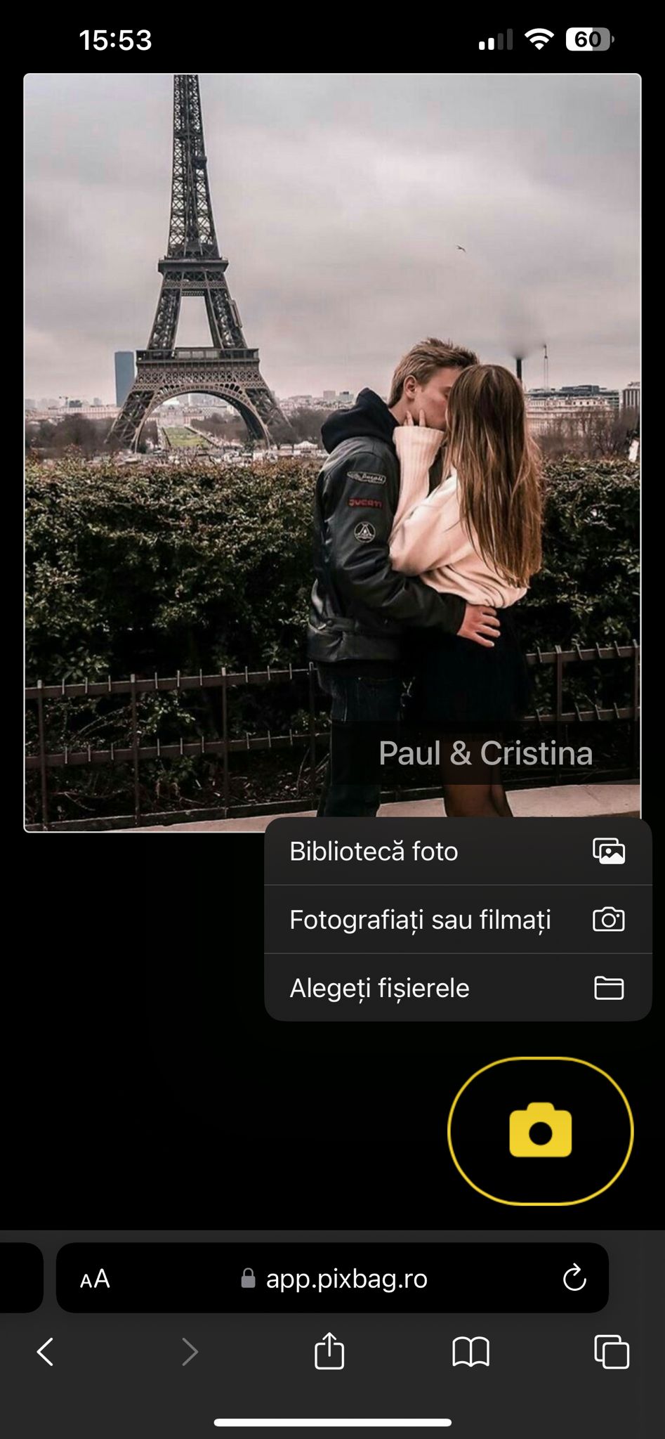 Felicitări! Ați scanat corect codul QR și ați ajuns în galeria media. Acum trebuie doar să încărcați fișierele, apăsând pe camera din dreapta!